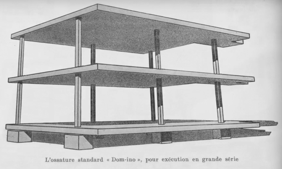 لوکوربوزیه یا شارل ادوارد ژانره، بنیان گذار معماری مدرن است که ۵ اصل وی اساس معماری مدرن را شکل داد. وی به دنبال ارائه ی راه حل های مدرن برای مشکلات مدرن بود که در نتیجه ی انقلاب صنعتی از جمله تولید انبوه به وجود آمده بودند. وی برای تحقق هدف خود به دوستی بین معماری باستانی روم و یونان باور داشت و به دنبال راه حل های نو بود. اولین پروژه ی وی خانه ی دومینو است که از دو واژه ی دوموس به معنای خانه و "اینو" به معنای خلاقیت است. خانه ی دومینو نمونه ای اولیه از استاندارد سازی و تولید انبوه در معماریست.