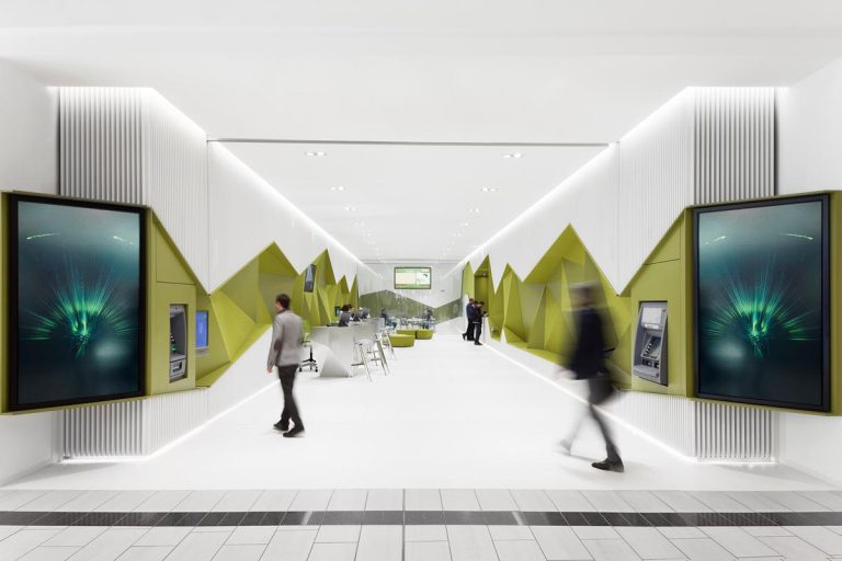 طراحی داخلی شعبه بانک مدرن | اصول چیدمان، امنیت و برندینگ معماری بانکی در ایران