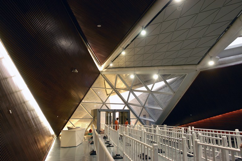 تعاریف معمار:این طرح مانند یک قطعه کریستال پر زرق و برقی است که به با قایق در دریاچه متلاطم بوده و به طور اتفاقی به ساحل نشسته است.این بنا گاخانه ای است که نمایشگاه باغبانی شهر شیان را به دامنه کوه می آمیزد.دسترسی بازدیدکنندگان از طریق یک برش طولانی بین حجم ساختمان وبه معنای واقعی کلمه ورود از داخل زمین صلب به یک فضای پذیرایی پر از نور است.از اینجا بازدیدکننده در یک مسیر شطرنجی وار به سه نقطه مختلف آب و هوایی با محیط های گاخانه ای مربوطه حرکت می کند.