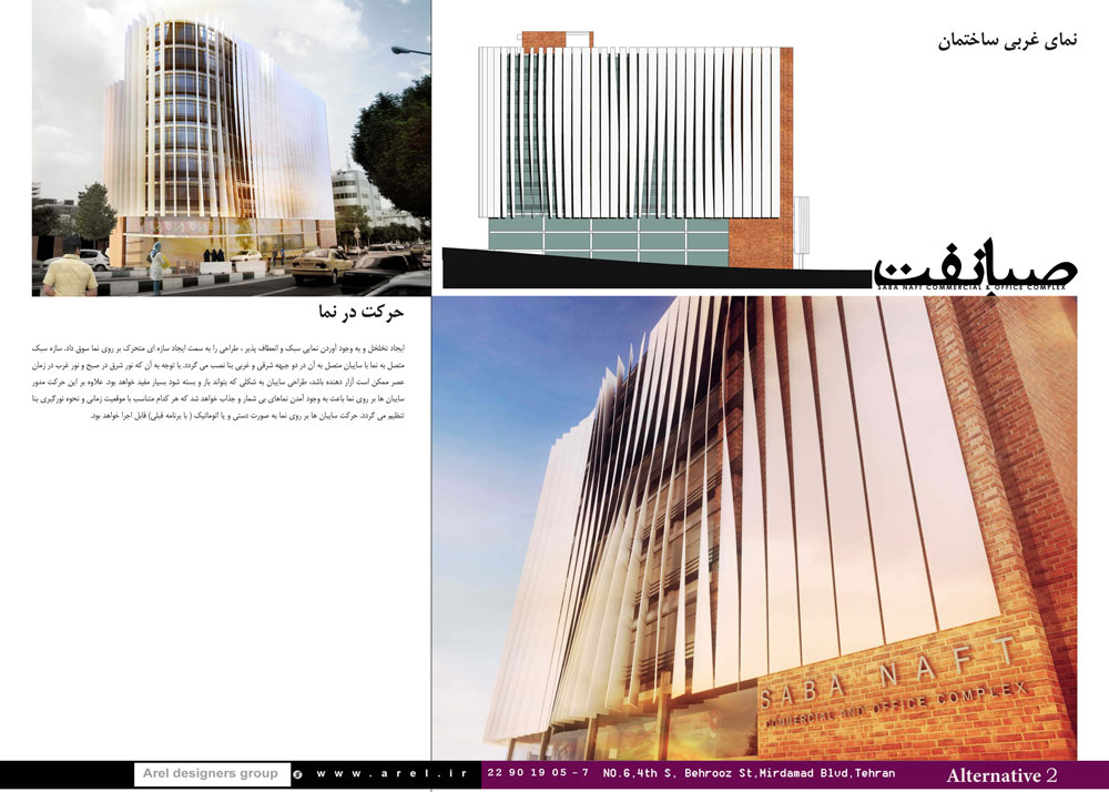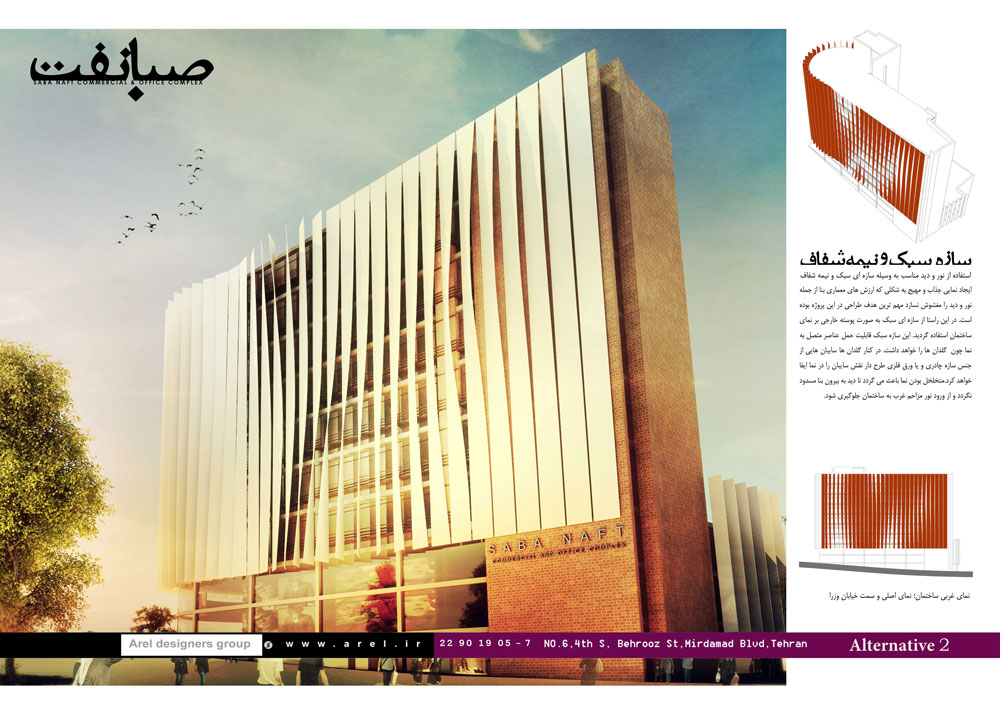 استفاده از نور و دید مناسب به وسیله سازه ای و نیمه شفاف ایجاد نمایی جذاب و مهیج به شکلی که ارزش های معماری بنا از جمله نور و دید را مغشوش نسازد مهم ترین هدف طراحی در این پروژه بوده است. در این راستا از سازه ای سبک به صورت پوسته خارجی بر نمای ساختمان استفاده گردید. این سازه سبک قابلیت حمل عناصر متصل به نما چون گلدان ها را خواهد داشت. در کنار گلدان ها سایبان هایی از جنس ساره چادری و یا ورق فلزی طرح دار نقش سایبان را نما ایفا خواهد کرد. متخلخل بودن نما باعث می گردد تا دید به بیرون بنا مسدود نگردد و از ورود نور مزاحم غرب به ساختمان جلوگیری شود.